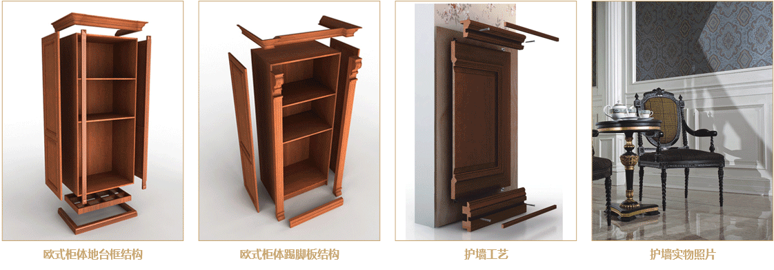 | 地台框结构,柜体安装在地台框上面,保护柜体不与地面接触受潮;地面不平的情况下保证柜体安装平整;地台框外面安装踢脚线,美观方便。 | 隐形扣件安装护墙,螺钉上墙后外面压条收口,护墙外面无枪钉螺丝,无需再次补漆修补,美观整洁。 | 半护墙产品运用,简洁大气 |