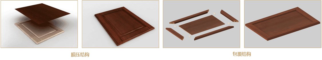 | 中纤板一次铣型,膜皮被3D真空吸塑机高温高压一次成型,不需要封边,结构稳定,防水防潮。 | 360度包裹线条,45度斜边拼框,立体感更好。 |